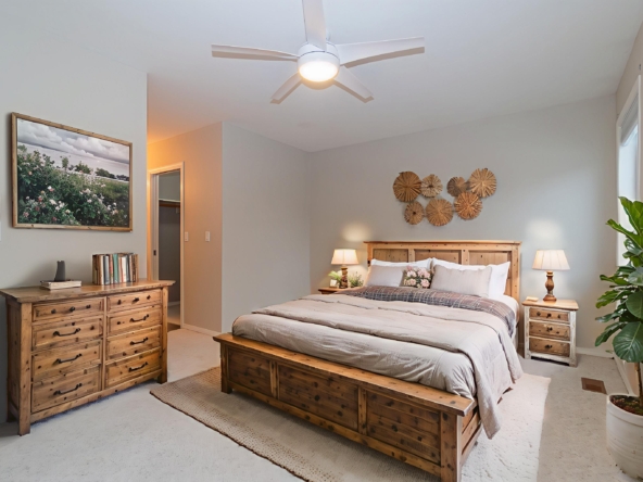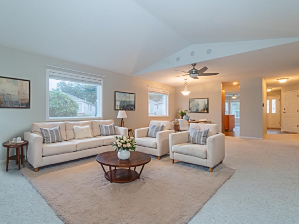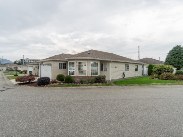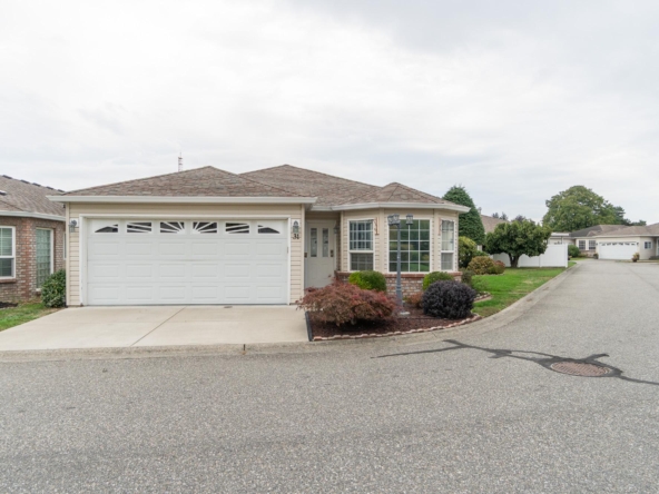 Tucked away from the everyday bustle yet ideally located within the complex, this spacious DETACHED corner-unit rancher in the gated 55+ Cottage Grove community offers 1,494 sq. ft. of thoughtfully designed single-level living on a 4,636 sq. ft. lot w. a PRIVATE BACKYARD. Featuring 2 large bds & 2 full bths (walk-in closest in primary), it boasts tile floors, custom cabinetry, quartz counters, designer paint, vaulted ceilings, and plenty of natural light. Recent upgrades include a new A/C, furnace, and hot water tank/newer appliances. Semi-open layout, high-efficiency gas fireplace, massive crawlspace, double garage, and fenced backyard. Walking distance to shopping, recreation, and transit, with a low $156/month strata fee — a rare gem in one of Chilliwack’s most desirable communities.